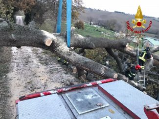 Nel pomeriggio, una squadra dei vigili del fuoco è intervenuta a Senigallia, nella frazione San Silvestro, per tagliare una grossa quercia caduta sulla carreggiata, ostruendo il passaggio ad un’abitazione. In supporto è arrivata anche l’autogrù dalla sede centrale, viste le notevoli dimensioni della pianta.