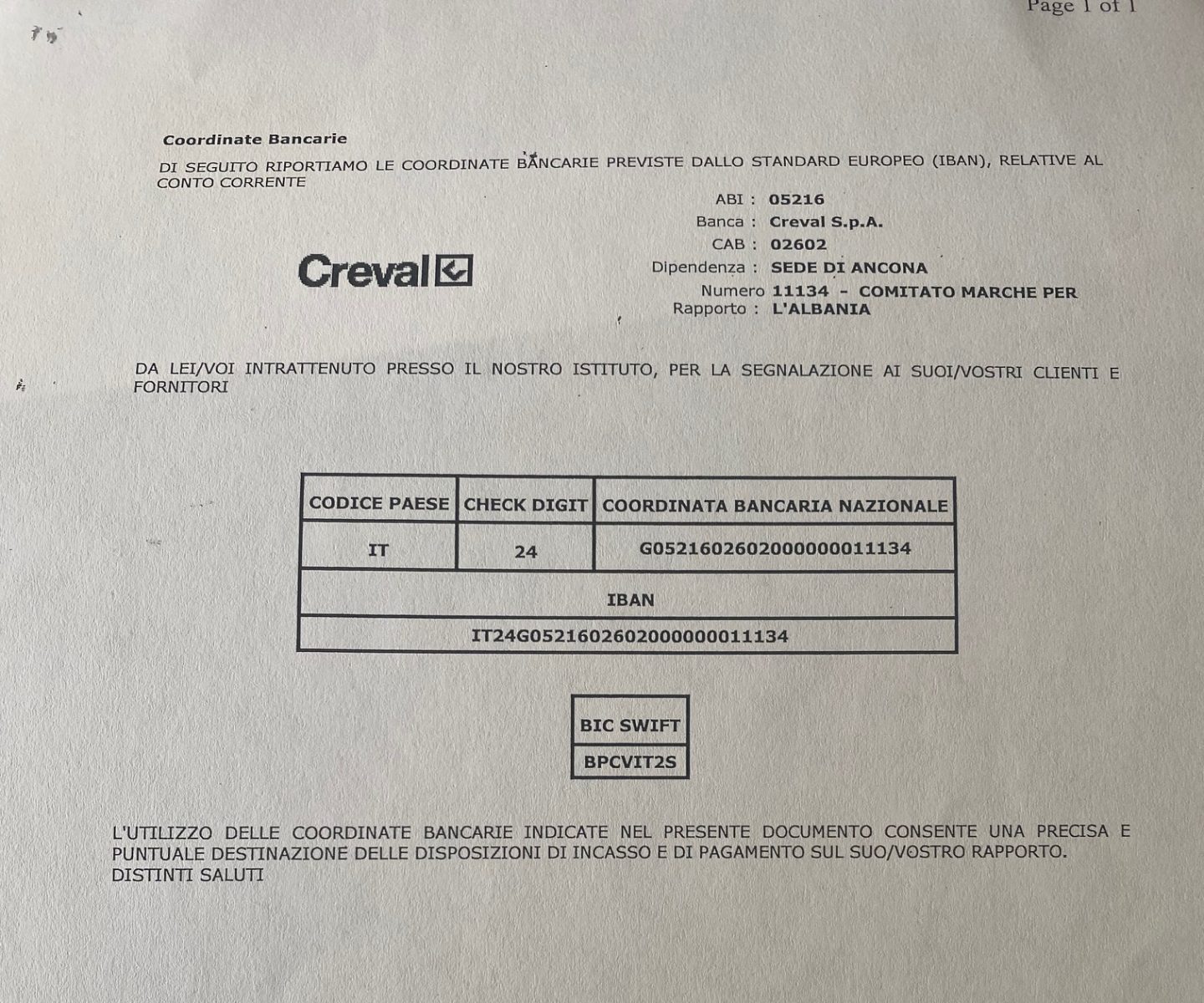 Le coordinate bancarie per le donazioni