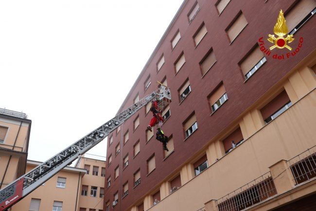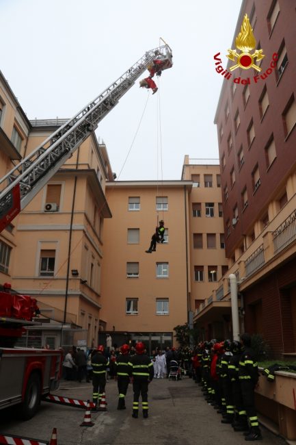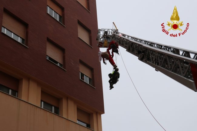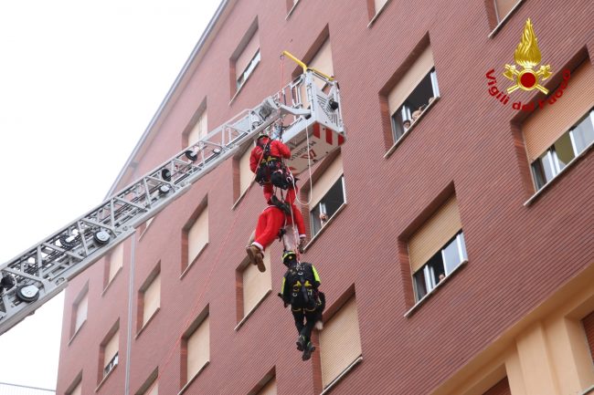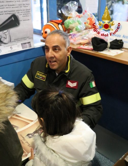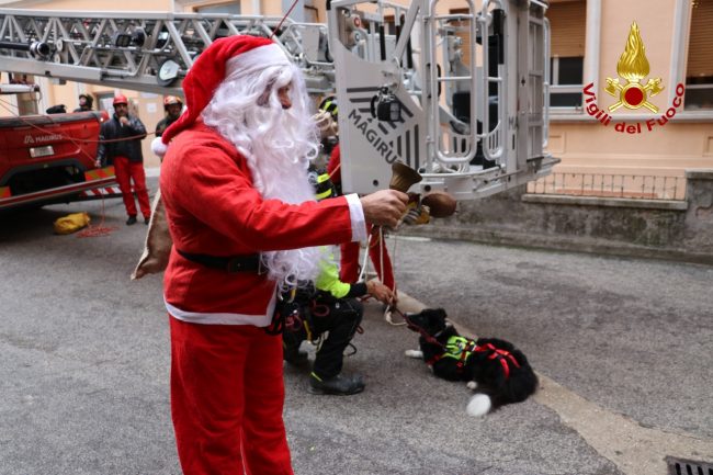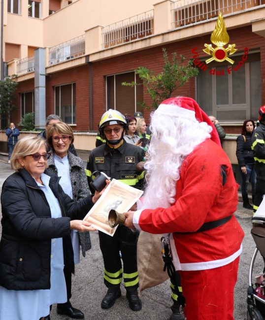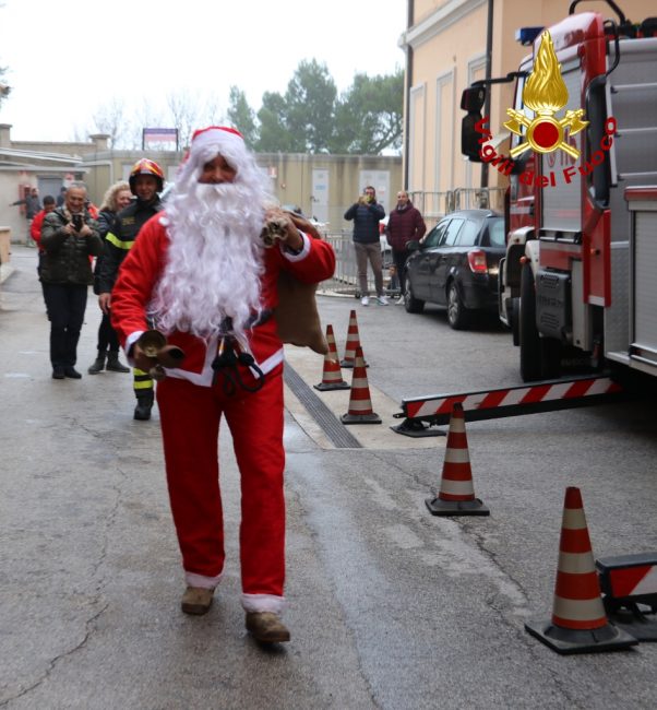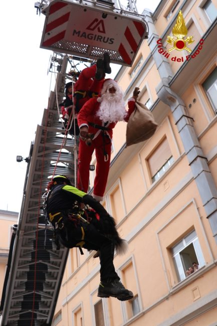 I vigili del fuoco del comando di Ancona, questa mattina, si sono recati all’ospedale pediatrico Salesi per rinnovare l’iniziativa di solidarietà giunta oramai all’ottava edizione. Babbo Natale è stato sollevato con l’autoscala insieme all’Unità Cinofila per salutare i piccoli dall’alto, poi ha incontrato i bambini nei diversi reparti per consegnare loro il diploma di giovane pompiere.