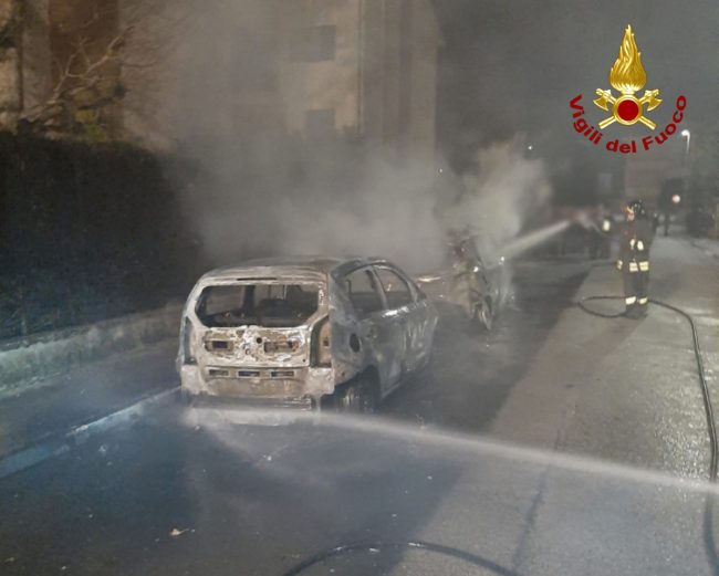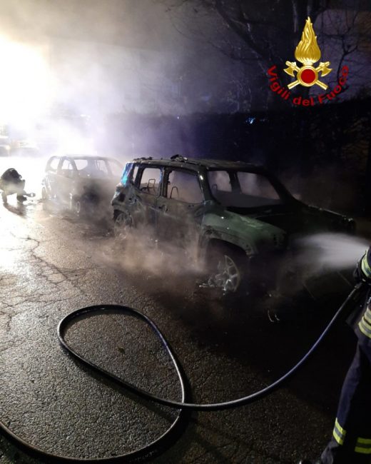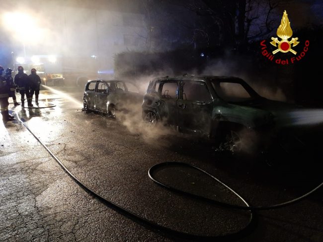 Quattro auto in fiamme in piena notte. La scia di fuoco ha squarciato il buio di Pianello Vallesina poco dopo la mezzanotte. Data la vastità dell’incendio, sul posto sono intervenute le squadre dei vigili del fuoco provenienti da Jesi, Arcevia e l’autobotte del comando di Ancona.  Due delle quattro auto sono andate completamente distrutte mentre le altre due sono state danneggiate. Sul posto sono intervenuti anche i carabinieri di Jesi per i rilievi di competenza. Non si esclude che la miccia possa essere partita dalla mano di un vandalo.