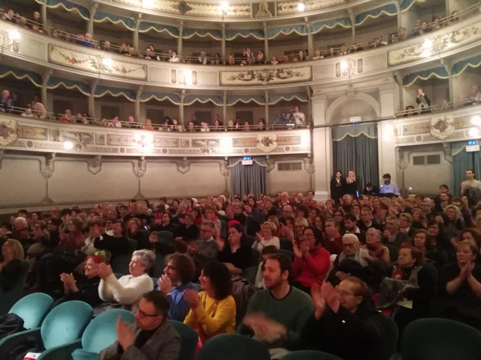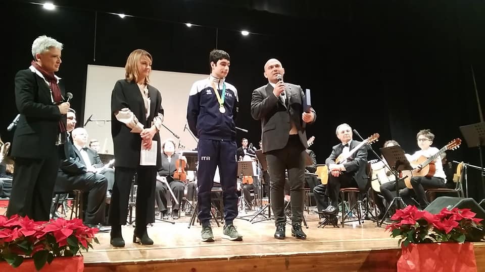 OSIMO - Teatro La Nuova Fenice gremito di pubblico per il Concerto di Natale della Civica Scuola di Musica e per lo staffettista cresciuto nell'Atletica Osimo che ha conquistato l'oro nelle gare di Brisbane in Australia