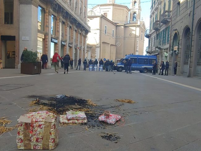 I finti pacchi dono lasciati per Salvini e poi usati per un falò
