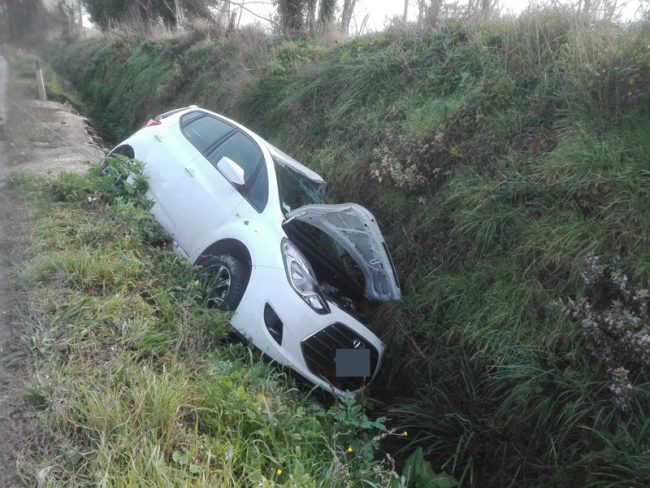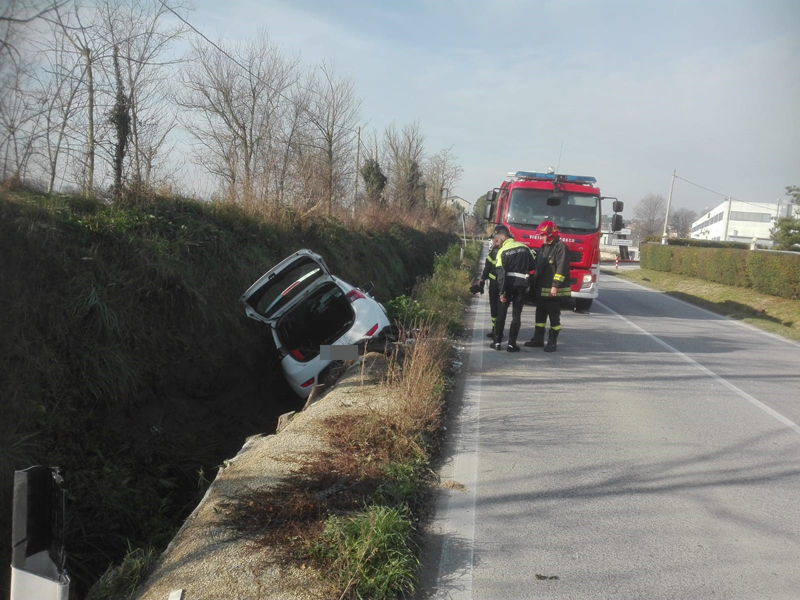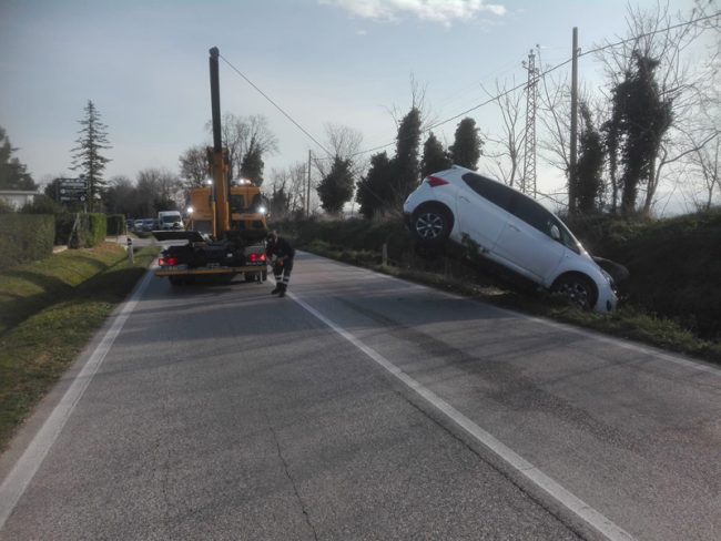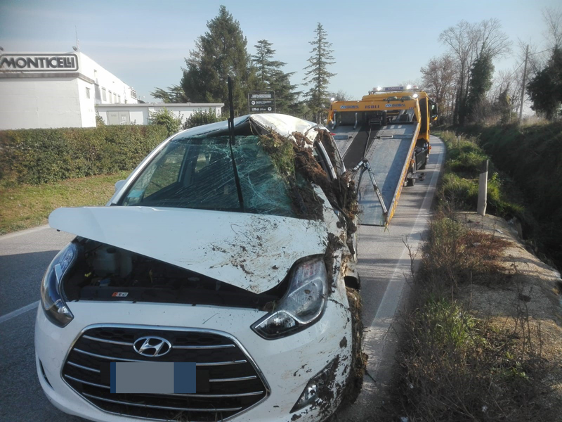 Ha perso il controllo della Hyundai che guidava e per cause in corso di accertamento da parte della Polizia locale di Osimo, questa mattina ha sbandato mentre percorreva via di Jesi in direzione Osimo. La vettura è finita in un fossato al margine della strada, a Campocavallo di Osimo, a poca distanza dall’incrocio con l’incrocio di via Giuggioli ed è rimasta inclinata su una fiancata. La conducente di 82 anni, la fidardense G.E., e il suo barboncino che era con lei a bordo del mezzo sono rimasti intrappolati dentro l’abitacolo. Verso le 11.20 è stato necessario l’intervento dei vigili del fuoco del distaccamento di San Sabino per liberare padrona e cane, non senza difficoltà, dalle lamiere aiutandoli ad uscire. La donna è stata poi consegnata alle cure degli operatori del 118 che l’hanno trasportata all’ospedale di Torrette di Ancona per sospetti traumi. Traffico a senso unico alternato e bloccato il tempo strettamente necessario al recupero del veicolo