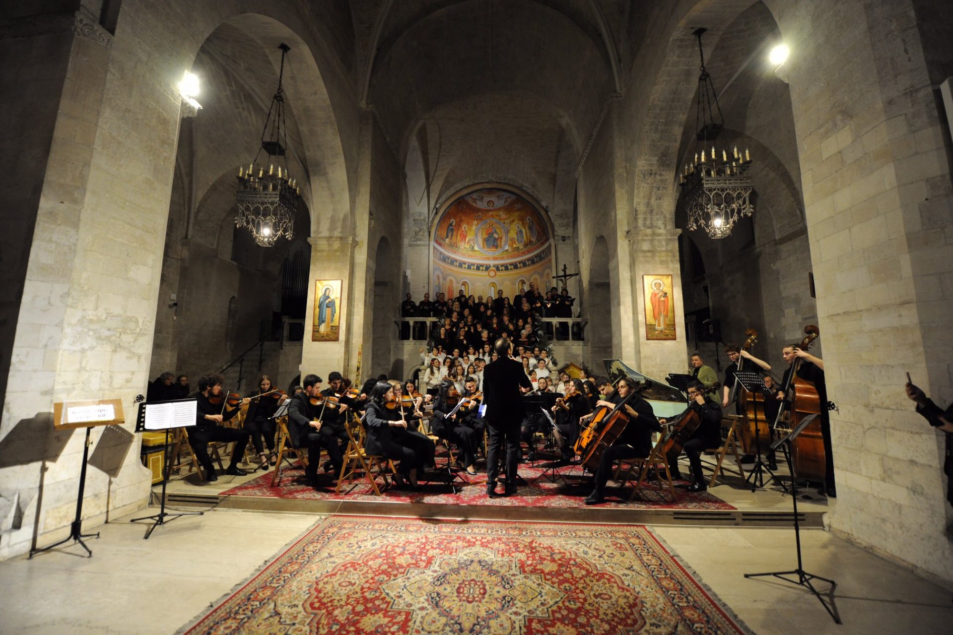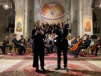Cattedrale di San Leopardo gremita di pubblico ieri sera, 28 dicembre, per ascoltare il Gran Concerto di Natale diretto dal maestro Alessandro Marra. Sono stati l’orchestra giovanile d’archi “Marche Music College”, la Corale “Giovan Ferretti” di Ancona, la corale “Borroni” di Osimo e il coro di voci bianche delle scuole osimane a portare la musica e far vibrare le mura antiche del Duomo di Osimo. «Una ensemble da tutte le Marche per condividere questo momento fortemente educativo, per creare arte, per fare musica insieme. Un grazie speciale ai bambini che per la rpima volta hanno cantato con una vera orchestra lavorandi ad un repertorio così difficile» ha sottolineato il maestro Marra tra gli applausi del pubblico. Tra i 100 musicisti e cantori, al sax, si è esibito anche l’assessore alla Cultura Mauro Pellegrini.