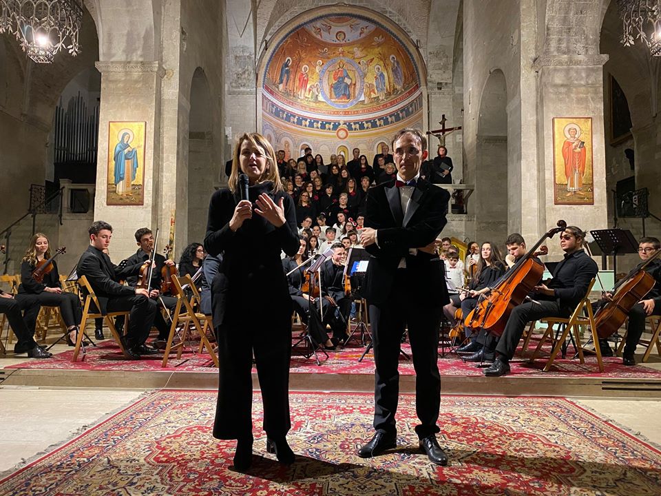 Il maestro Alessandro Marra con la direttrice della Civica Scuola di Musica di Osimo, Daiana Dionisi