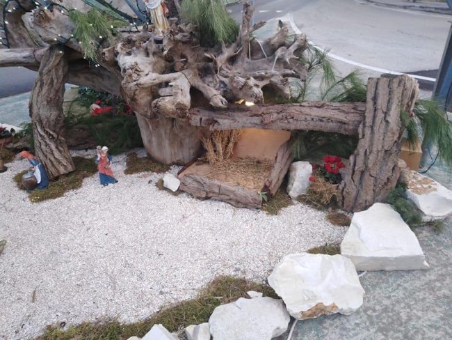Il presepe dell’aiuola spartitraffico di Villa Musone depredato delle statuetette di San Giuseppe, della Madonna e del Bambino Gesù