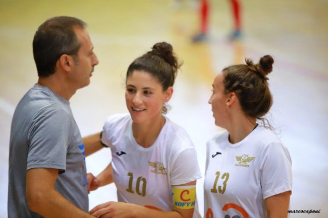 Una media di 2,1 punti in campionato, 130 gol fatti contro 76 subiti tra campionato, playoff e Coppa. Un 2019 davvero da incorniciare per il Città di Falconara in vista di un 2020 tutto da vivere con le ragazze allenate da mister Massimiliano Neri in lizza per tutti i titoli in palio: terzo posto in coabitazione con il Montesilvano nel campionato di Serie A femminile di calcio a 5, qualificazione alla Final8 di Coppa Italia da testa di serie e accesso ai quarti di Coppa della Divisione. C’è di che sognare per i tifosi che hanno ancora negli occhi la lunga cavalcata sportiva di questo anno solare, terminata domenica scorsa al PalaBadiali con il pareggio casalingo per 2-2 contro la capolista Real Statte. La stessa squadra con la quale, il 6 gennaio 2019, si era aperto l’anno. Allora, in terra pugliese, fu sconfitta per 3-1 che però inaugurò una lunga sequenza di risultati positivi grazie a una difesa difficilmente perforabile (173 minuti di imbattibilità, record per l’ungherese Nagy), alla consueta tenacia delle atlete che vestono la maglia con il falco sul cuore e a un pubblico sempre più numeroso e capace di trasformare il PalaBadiali in un tempio festante del futsal: lo stesso in grado di accompagnare le Citizens ad accedere ai playoff scudetto e a vincere gara2 dei quarti, costringendo il quotato Kick Off allo spareggio, poi perso in quel di Milano.