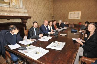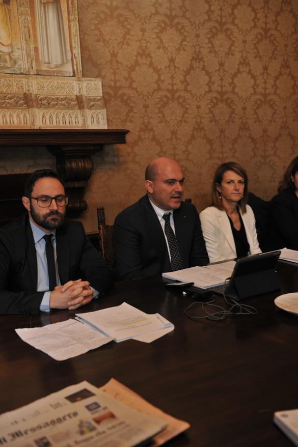 Osimo, la conferenza stampa di fine 2019, da sin. il presidente del Consiglio Campanari, il sindaco Pugnaloni e il vice sindaco Andreoni