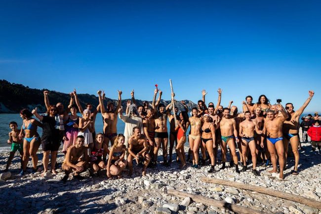 EVENTO - Da ormai dieci anni, un gruppo di anconetani si trova nella baia per l'ultimo tuffo dell'anno e brindare al nuovo