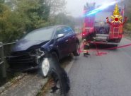 SENIGALLIA – I vigili del fuoco hanno ancorato la vettura dopo l’urto sul parapetto dell’infrastruttura sul fiume Nevola e il fuori strada sulla Corinaldese