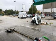 JESI – Il mezzo a tre ruote si è cappottato di lato, restando con le ruote all’aria dopo il contatto con un Ducato. Il conducente è stato trasferito in ospedale