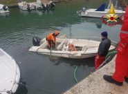 ANCONA – ll natante è stato riportato a galla con l’uso di palloni pneumatici