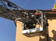 CERRETO D’ESI – Le operazioni di messa in sicurezza sono scattate oggi pomeriggio ma non è stato possibile raggiungere la copertura del municipio perché l’autoscala poteva arrivare solo ad un’altezza di 30 metri
