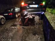 L’EPISODIO è avvenuto sabato sera ad Ascoli. La pressione dell’acqua ha provocato l’esplosione scaraventando la vettura sul muretto laterale. Tanto spavento per le persone a bordo