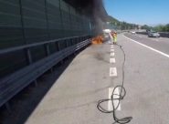 GROTTAMMARE – Diretto verso Pescara, il conducente è riuscito prontamente a fermarsi e ha fatto scattare l’allarme. Subito sul posto sono arrivati gli addetti del Gruppo Servizi Associati (Gsa spa) che hanno domato le fiamme
