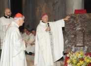 ANCONA – Prima del termine della funzione religiosa in cattedrale mons. Angelo Spina ha chiesto all’arcivescovo benemerito di benedire un bassorilievo in bronzo che ricorda gli 800 anni dalla partenza di san Francesco dal porto dorico per la Terra Santa