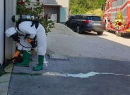 AGUGLIANO – L’allarme è scattato ieri pomeriggio. Il nucleo Nbcr dei vigili del fuoco è arrivato sul posto insieme agli agenti della Polizia locale e ai tecnici Arpam per mettere in sicurezza l’area e tamponare la perdita