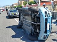 FALCONARA – Per un problema allo sterzo ha perso il controllo della vettura e si è schiantato contro un veicolo parcheggiato per poi finire con le ruote all’aria. E’ illeso