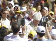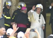 CAMERINO – Il Pontefice si è fermato in preghiera davanti alla statua della Madonna decapitata a causa del terremoto. Emozione in piazza Cavour dove dai cellulari i presenti hanno seguito la visita alle casette. Ad attendere il Santo Padre anche il cardinale Menichelli