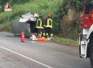 TRECASTELLI – La vettura dopo aver sbandato sulla Corinaldese a ridosso di una curva ha perso il serbatoio del carburante gpl. Sul posto i vigili del fuoco di Senigallia