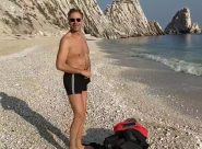 SIROLO – Il 58enne osimano Ivano Montenovo, che ormai è un veterano dei bagni d’autunno, stamattina ha sfidato l’acqua gelida onorando la tradizione
