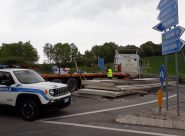 CASTELFIDARDO – L’incidente all’altezza della rotatoria per San Rocchetto. Quattro i prefabbricati scivolati sulla strada, erano lunghi 15 metri e alti 3