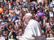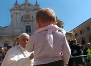 LA VISITA – Il papà ha sgomitato tra la folla e si è fatto notare dal pontefice