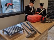 CASTELFIDARDO -. La banda è fuggita per campi dopo aver abbandonato il furgone, rubato da una delle aziende visitate, con dentro il bottino appena razziato. I carabinieri di Castelfidardo hanno ritrovato oltre alla scultura, una livella laser 3D, una scacchiera in pietra di marmo, e vari attrezzi atti allo scasso