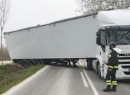 STAMATTINA i vigili del fuoco sono intervenuti a Falconara in via Poiole. all’incrocio via Clementina per soccorrere l’autoarticolato in difficoltà