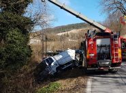 GENGA – Stamattina i vigili del fuoco di Arcevia e di Ancona stamattina hanno soccorso con l’autogru il mezzo finito ai margini della strada regionale 360