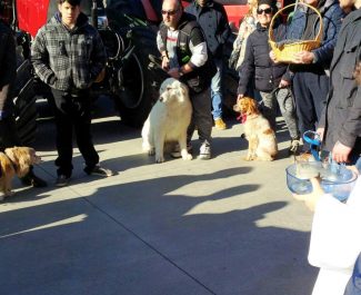 Gli animali domestici ricevono la benedizione nella parrocchia della Misericordia di Osimo (foto d’archivio)