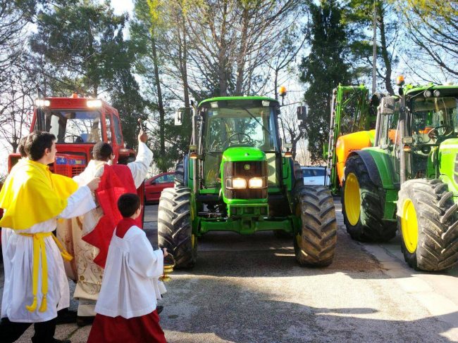 La benedizione dei trattori nella parrocchia della Misericordia di Osimo in una precedente edizione della Festa di Sant’Antonio Abate