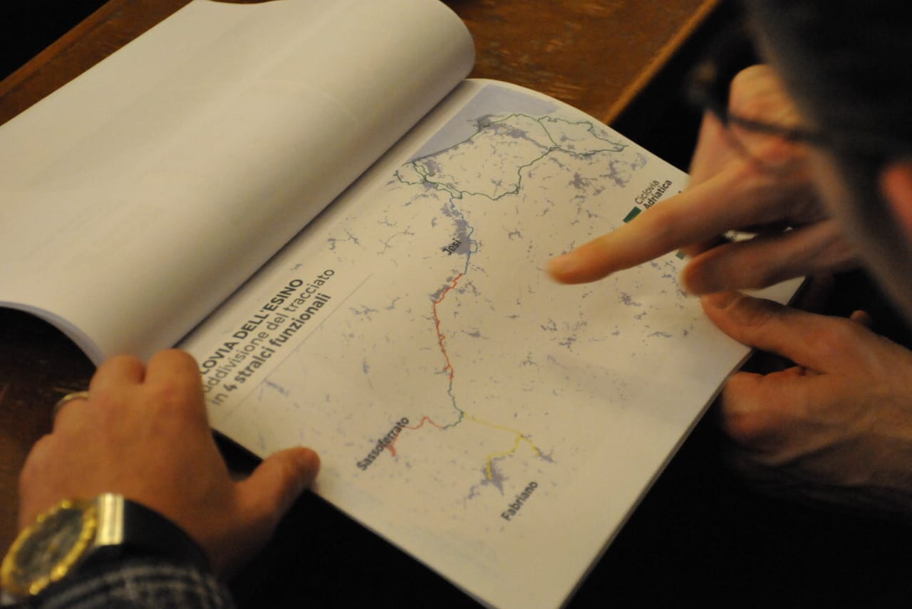 Francesca Pulcini (presidente Legambiente Marche) ha ribadito come l’associazione “fin dall’inizio ha sostenuto questa esperienza dell’Esino, per favorire una gestione equilibrata del territorio. Appoggiamo il progetto delle ciclovie marchigiane. Cinquanta milioni investiti dalla Regione in questa nuova infrastruttura permettono alle Marche di cambiare volto, di concretizzare buone pratiche, costruendo una comunità sana e virtuosa che lavora per rafforzare il proprio territorio. È un’esperienza che apre enormi possibilità, dando vita a tante reti territoriali: una grandissima occasione di cambiare volto, di rispondere ai cambiamenti climatici puntando su un’economia circolare”. Il presidente della Provincia di Ancona, Luigi Cerioni (sindaco di Cupramontana), ha successivamente espresso i propri complimenti “ai Comuni che si sono, con impegno, adoperati per rendere realtà la Ciclovia dell’Esino, perché si tratta di un progetto importante che significa sviluppo e promozione di tutto il territorio. La realizzazione della Ciclovia si è rivelata un esempio virtuoso di un lavoro di squadra, capace di unire, in modo costruttivo e ottimale, tutte le istituzioni”. Da parte dei sindaci intervenuti alla presentazione è stata apprezzata “la scelta intelligente effettuata con la Ciclovia, che svilupperà, nell’entroterra, un’economia legata alla bici, favorendo un accesso verso i mercati del Nord Europa, particolarmente attratti dal cicloturismo. Stiamo investendo nel futuro delle Marche”.