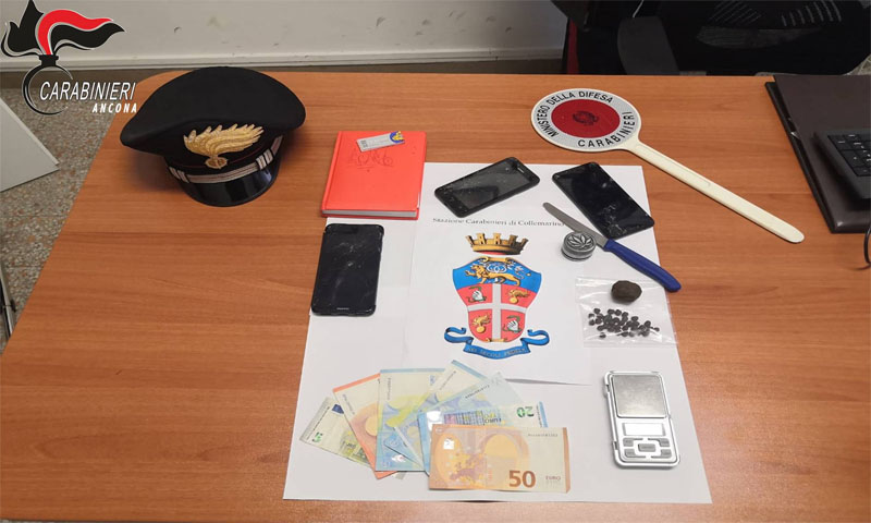 Stamattina, i carabinieri della Compagnia di Ancona nel corso di uno specifico servizio di contrasto del fenomeno dello spaccio di sostanze stupefacenti, attuato dalla Stazione di Collemarino e dalla Sezione Operativa del Norm, hanno tratto in arresto, in flagranza di reato, un giovane anconetano trovato in possesso di 24,5 grammi di hashish. I militari hanno bussato insistentemente alla porta dell’abitazione del 19enne di Ancona per eseguire una mirata perquisizione domiciliare e lui ha iniziato a lanciare oggetti dalla finestra della sua abitazione. Il giovane non era a conoscenza che i carabinieri, prima di bussare alla porta, hanno provveduto a posizionare altri militari lungo il perimetro esterno dello stabile in corrispondenza della sua abitazione, pertanto gli oggetti sono stati prontamente recuperati.