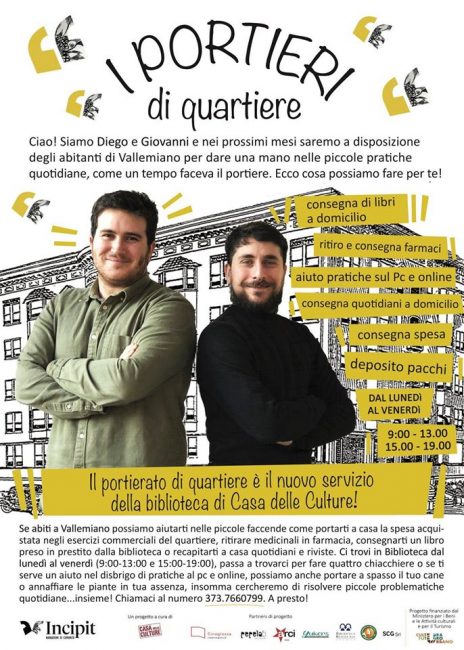 Un servizio di portierato per semplificare la vita dei residenti di Vallemiano. E’ l’innovativo e sperimentale progetto che partirà domani mattina nel quartiere dell’ex mattatoio con il coordinamento della Casa delle Culture. Proprio come due vecchi portieri, Giovanni Purpura e Diego Lerro si metteranno ai disposizione dei cittadini per aiutarli nelle faccende quotidiane: ritirare i pacchi, consegnare la spesa, comprare le medicine, accompagnare i bimbi da scuola a casa, portare fuori i cani, fare compagnia alle persone sole. Il servizio è totalmente gratuito e si rivolge ai residenti del quartiere, sopratutto agli anziani, alle persone che vivono sole e alle famiglie mono-genitoriali. «Condivisione, prossimità e fiducia sono i concetti su cui si basa questo nuovo modo, ma a dire il vero antico, di risolvere i problemi individuali e allo stesso tempo collettivi» è il riassunto del progetto della Casa delle Culture, reso possibile grazie alla partecipazione a un bando Mibact che richiedeva alle strutture di pubblica lettura di sviluppare servizi ulteriori rispetto a quelli forniti dalla biblioteca. Il progetto di Vallemiano ha preso spunto dalle esperienze di Lulu dans ma rue e dal Portierato 14. Il primo è stato messo in pratica da un edicolante parigino, il secondo da un bar di Milano. In entrambi i casi, gli esercizi commerciali offrono (oltre alla loro naturale vocazione) servizi gratuiti per aiutare i residenti. Per richiedere una mano a Diego e Giovanni è necessario recarsi nei locali della biblioteca della Casa delle Culture o telefonare al 373 766 0799. Il servizio è possibile dal lunedì al venerdì, dalle 9 alle 13 e dalle 15 alle 19.