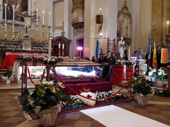 Qui resterà fino al prossimo 28 gennaio, nello stesso luogo sacro dove ‘Marietta’, come la chiamano i suoi concittadini, aveva ricevuto i sacramenti del battesimo e della cresima prima di trasferirsi con la famiglia nell’agro romano nei primi anni del ‘900. E’ ricco il programma degli eventi che nel corso di questi 8 giorni saranno dedicati alla Santa, ricorda il Comune di Corinaldo. Tra i tanti va segnalato quello di stasera, ore 21, al teatro comunale “Goldoni” . Una serata di dialogo e confronto con Beppe Severgnini, giornalista del Corriere della Sera e Franco Manenti, vescovo di Senigallia sul tema “Maria Goretti giovane donna del suo tempo e del nostro…”. Ad anticipare la serata, in occasione della giornata dedicata ad anziani e ammalati, alle ore 15.30 di oggi la S.Messa e unzione degli infermi.