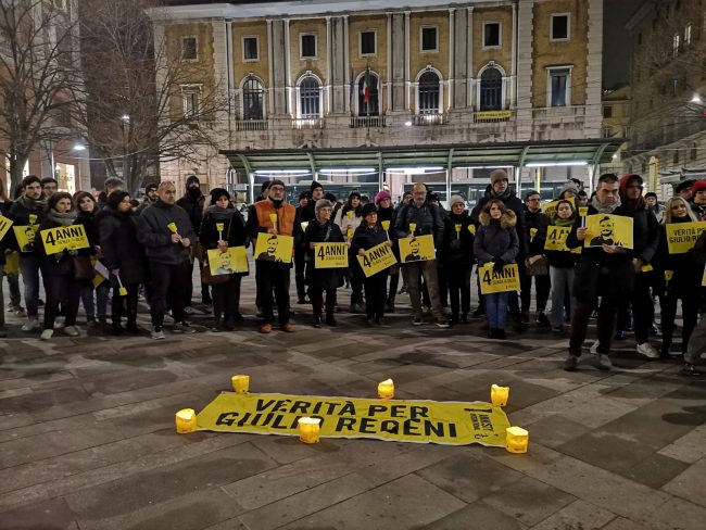 Fiaccole, silenzio e la voglia di ottenere giustizia. Si è tenuta questa sera a piazza Roma la manifestazione per mantenere viva la memoria di Giulio Regeni, il ricercatore rapito e ucciso quattro anni fa in Egitto. Per la sua morte non ci sono ancora colpevoli e la fiaccolata serve proprio a chiedere verità e giustizia. La commemorazione si è tenuta in varie piazze italiane grazie alle iniziative promosse da Anpi, Amnesty International e Adi ed alle 19,41 (ora dell’ultimo contatto avuto tra Giulio e la madre il 25 gennaio 2016) c’è stato un momento di raccoglimento. Il suo corpo straziato sarebbe stato ritrovato solo il 3 febbraio successivo, vicino a Il Cairo, in un fosso lungo l’autostrada per Alessandria. Dopo vari depistaggi ed il silenzio prolungato ed assordante sulla vicenda da pare delle autorità egiziane, non ci sono ancora risposte certe su cosa sia avvenuto dopo il suo rapimento. Tra i presenti alla fiaccolata, il presidente del Consiglio regionale, Antonio Mastrovincenzo.
