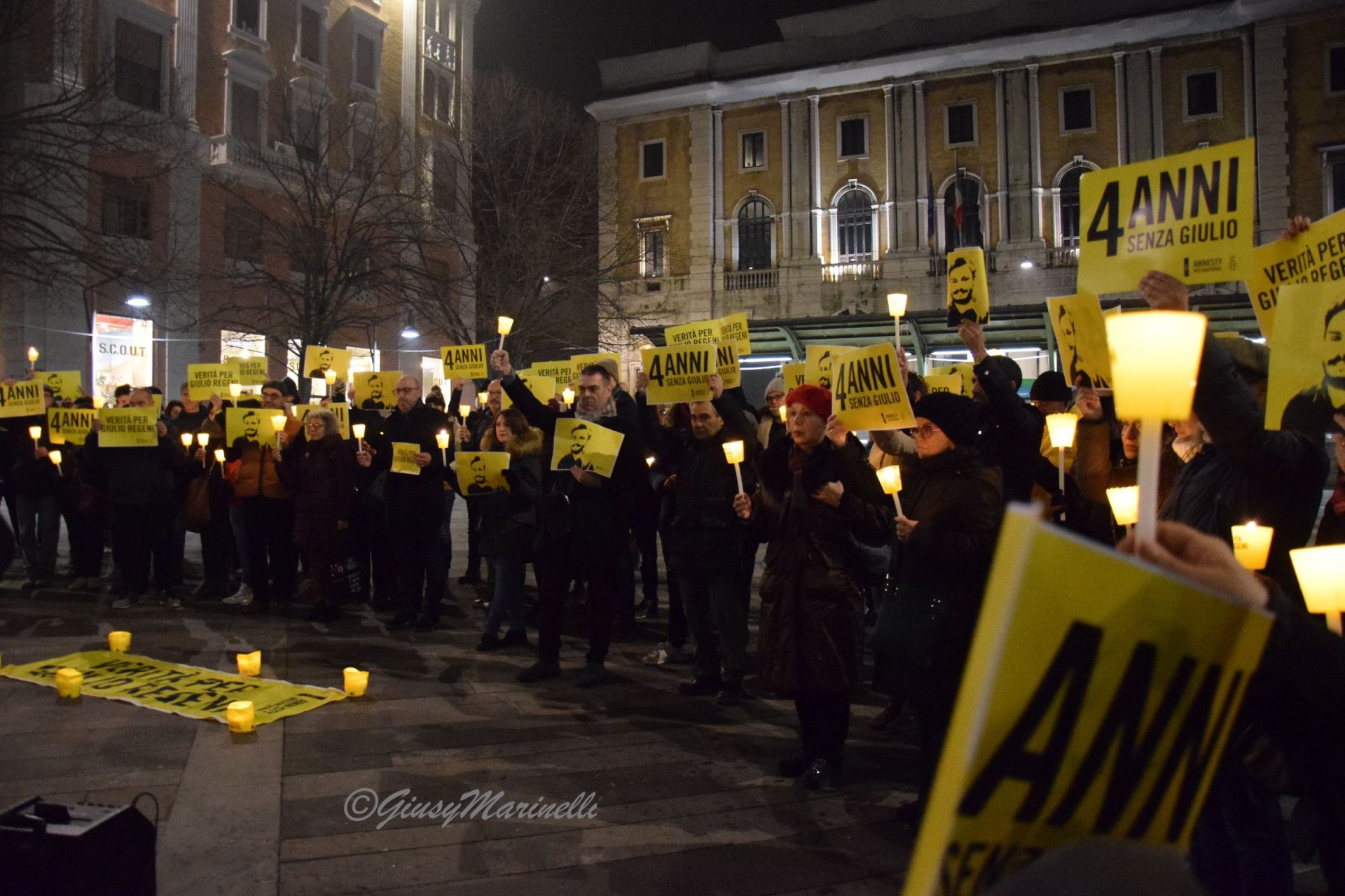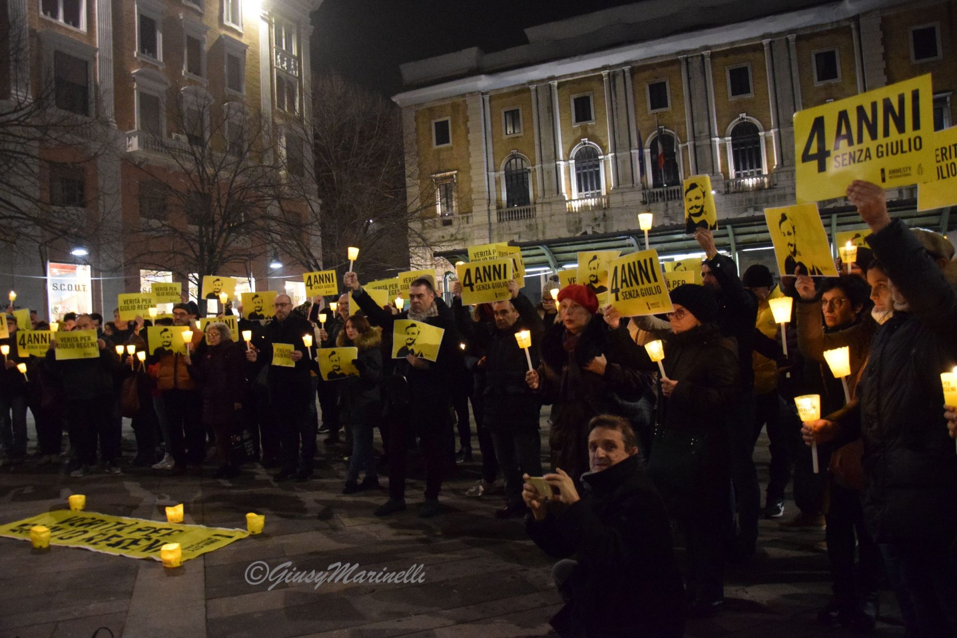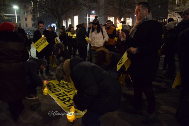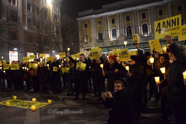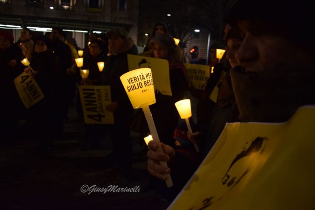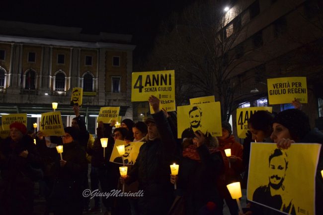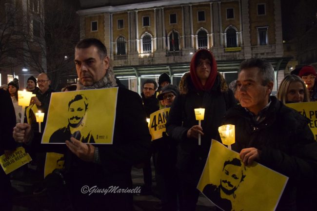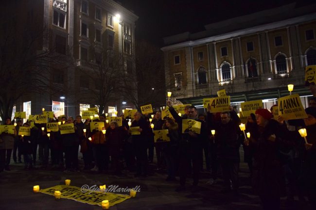Fiaccole, silenzio e la voglia di ottenere giustizia. Si è tenuta questa sera a piazza Roma la manifestazione per mantenere viva la memoria di Giulio Regeni, il ricercatore rapito e ucciso quattro anni fa in Egitto. Per la sua morte non ci sono ancora colpevoli e la fiaccolata serve proprio a chiedere verità e giustizia. La commemorazione si è tenuta in varie piazze italiane grazie alle iniziative promosse da Anpi, Amnesty International e Adi ed alle 19,41 (ora dell’ultimo contatto avuto tra Giulio e la madre il 25 gennaio 2016) c’è stato un momento di raccoglimento. Il suo corpo straziato sarebbe stato ritrovato solo il 3 febbraio successivo, vicino a Il Cairo, in un fosso lungo l’autostrada per Alessandria. Dopo vari depistaggi ed il silenzio prolungato ed assordante sulla vicenda da pare delle autorità egiziane, non ci sono ancora risposte certe su cosa sia avvenuto dopo il suo rapimento. Tra i presenti alla fiaccolata, il presidente del Consiglio regionale, Antonio Mastrovincenzo.