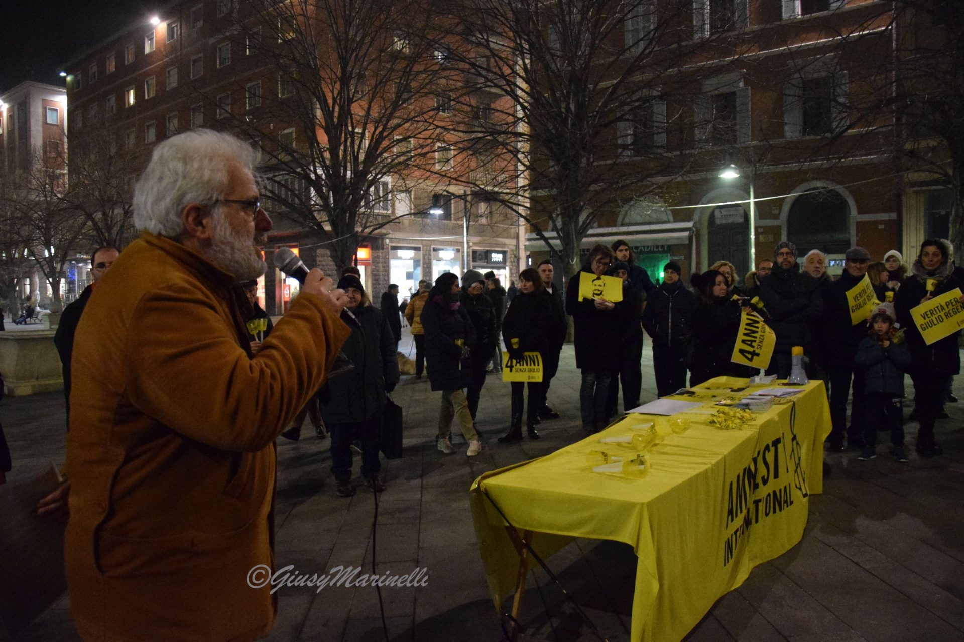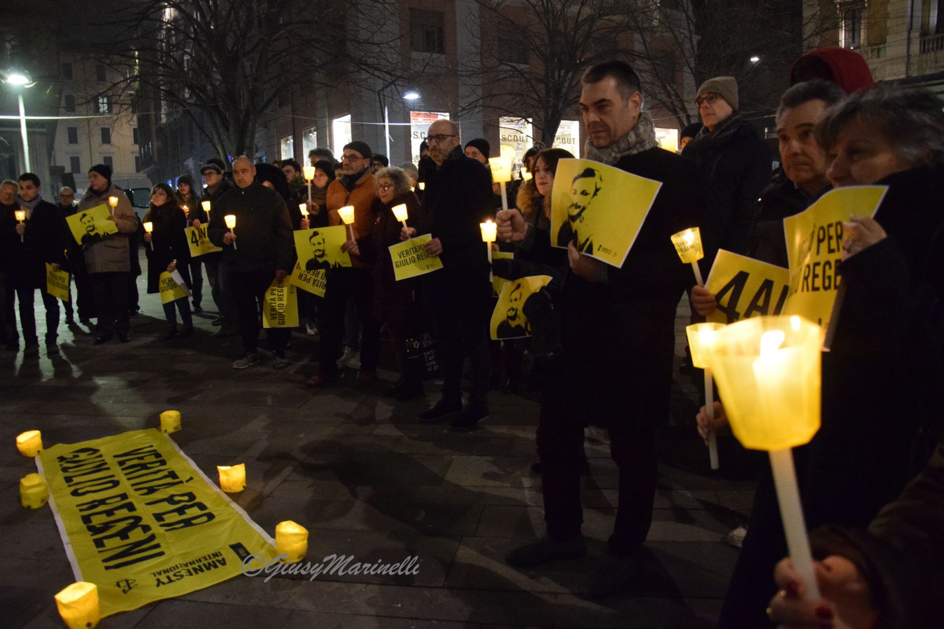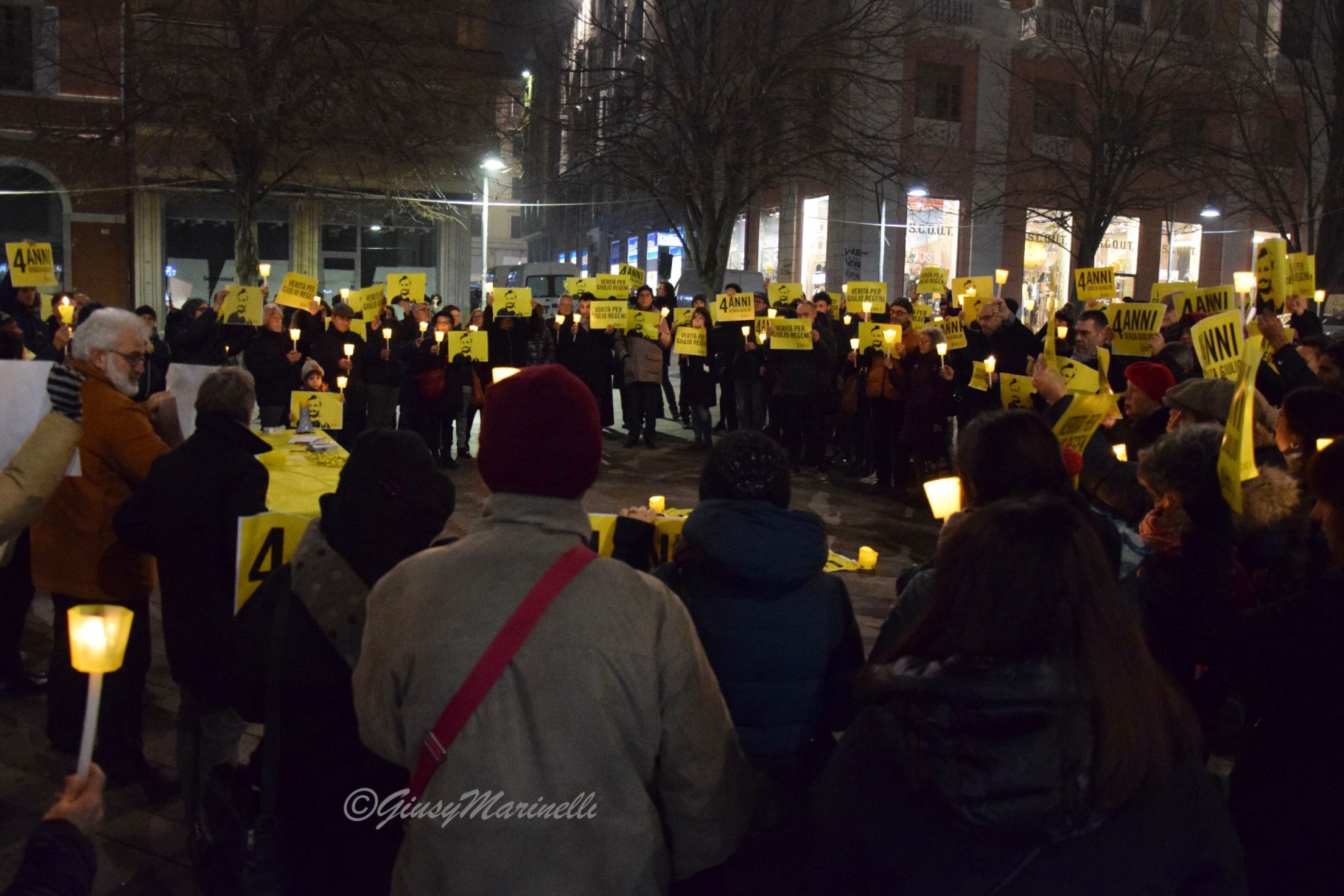Fiaccole, silenzio e la voglia di ottenere giustizia. Si è tenuta questa sera a piazza Roma la manifestazione per mantenere viva la memoria di Giulio Regeni, il ricercatore rapito e ucciso quattro anni fa in Egitto. Per la sua morte non ci sono ancora colpevoli e la fiaccolata serve proprio a chiedere verità e giustizia. La commemorazione si è tenuta in varie piazze italiane grazie alle iniziative promosse da Anpi, Amnesty International e Adi ed alle 19,41 (ora dell’ultimo contatto avuto tra Giulio e la madre il 25 gennaio 2016) c’è stato un momento di raccoglimento. Il suo corpo straziato sarebbe stato ritrovato solo il 3 febbraio successivo, vicino a Il Cairo, in un fosso lungo l’autostrada per Alessandria. Dopo vari depistaggi ed il silenzio prolungato ed assordante sulla vicenda da pare delle autorità egiziane, non ci sono ancora risposte certe su cosa sia avvenuto dopo il suo rapimento. Tra i presenti alla fiaccolata, il presidente del Consiglio regionale, Antonio Mastrovincenzo.