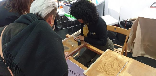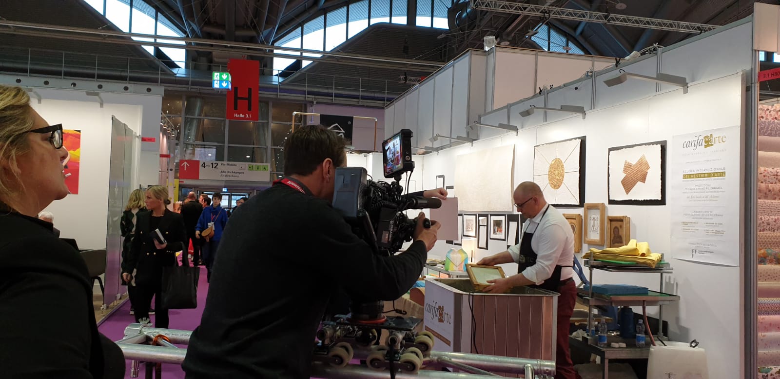 I nostri maestri cartai, Sandro Tiberi e Gilvana Maria Da Silva, hanno catturato l’attenzione delle migliaia di visitatori che dal 25 gennaio scorso hanno affollato i padiglioni a Messe, zona fieristica della città tedesca,racconta un comunicato ufficiale della Carifac’Arte. Alcuni numeri testimoniano l’importanza dell’avvenimento, che si svolge con cadenza annuale: oltre 1.600 espositori provenienti da circa 70 Paesi del mondo; oltre 35mila visitatori nella scorsa edizione provenienti da 140 nazioni. A raccontare l’Italia, fra gli altri espositori, lo stand di Carifac’Arte presente nel padiglione centrale 3.1 stand H80. Tutti i giorni produzioni dal vivo di fogli di carta e di pregiate Carte Filigranate realizzati a mano che hanno fatto dello spazio allestito all’interno della fiera di Francoforte, uno dei luoghi a più alta frequentazione di visitatori. A testimonianza di ciò, la decisione degli organizzatori della fiera di girare un video che hanno prontamente inserito nel loro sito ufficiale.