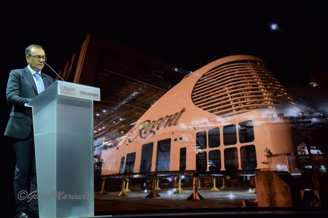 Si è svolta questa mattina nello stabilimento anconetano della Fincantieri la cerimonia di consegna di Seven Seas Splendor, la seconda nave da crociera ultra-lusso realizzata da Fincantieri per Regent Seven Seas Cruises, brand del gruppo Norwegian Cruise Line Holdings Ltd (NCLH). La società armatrice ha già ordinato a Fincantieri una terza unità della serie, che sarà consegnata nel 2023. Alla cerimonia sono intervenuti, fra gli altri, Jason Montague, President & CEO di Regent Seven Seas Cruises e il Direttore Generale della Divisione Navi Mercantili di Fincantieri, Luigi Matarazzo. Come la gemella Seven Seas Explorer, consegnata da Fincantieri presso lo stabilimento di Sestri Ponente (Genova) nel 2016, Seven Seas Splendor ha 55.000 tonnellate di stazza lorda, una lunghezza di 224 metri e può ospitare a bordo 750 passeggeri in 375 ampie suite, tutte dotate di balcone privato. L’unità è infatti la quinta nave della flotta della società armatrice ad avere sole suite. L’allestimento è particolarmente ricercato ed è stata prestata molta attenzione ai dettagli, all’artigianato raffinato e al comfort per i passeggeri. Le navi sono costruite adottando le più avanzate tecnologie in tema di protezione ambientale. Fincantieri ha costruito dal 1990 ad oggi 97 navi da crociera, mentre altre 49 unità sono in costruzione o di prossima realizzazione negli stabilimenti del gruppo.