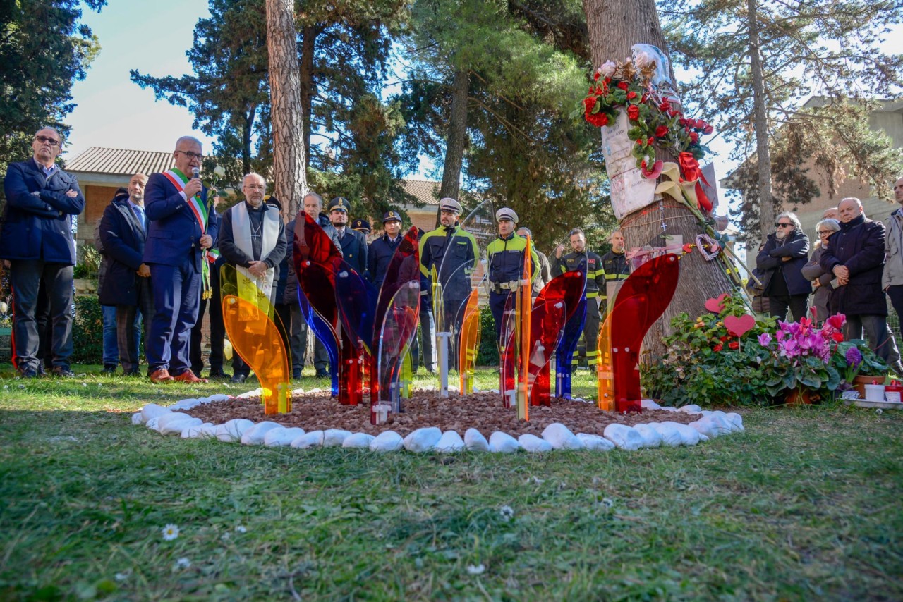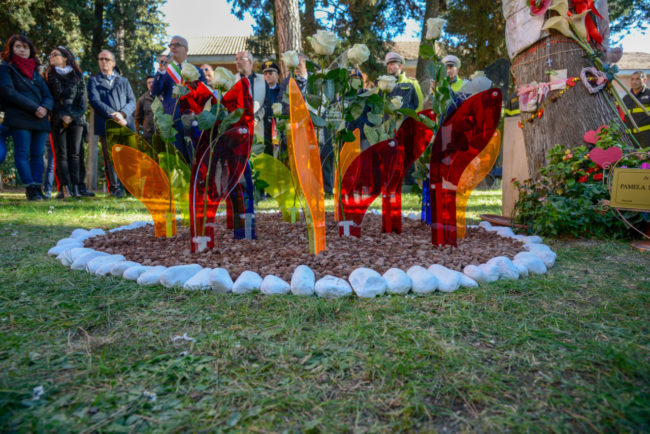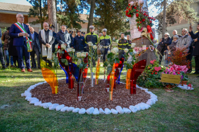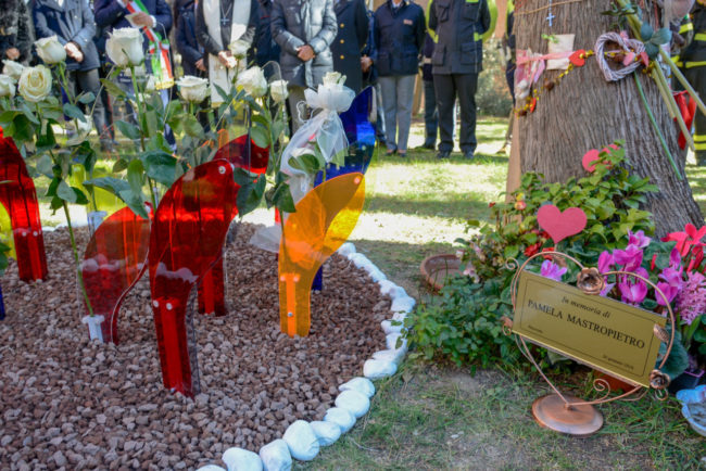 E’ stato poi letto il messaggio della mamma di Pamela: «A voi tutti maceratesi: ringrazio chi è stato e continua a starci vicino, a chi con il cuore ha sentito, da questa tragica morte, mia figlia Pamela come fosse la sua, a chi non dimenticherà, a chi la ricorderà, nelle chiese, nelle preghiere, nelle famiglie. Vi ringrazio di cuore per il bel gesto che avete voluto oggi porgerle, con l’accortezza di tenere sempre vivo il suo ricordo, perché nessuno può e deve morire così, per mano di altre persone da me ritenute demoniache. Curate questo luogo come fosse il vostro così che siate anche voi esempio per i giovani e per il rispetto». Il sindaco ha ringraziato l’assessore Marco Cardarelli, Emilio Antinori, che ha ideato e pensato l’installazione, Giuseppe Marcelletti, proprietario del giardino, e il consigliere Andrea Marchiori. Oltre a loro erano presenti il vice sindaco Stefania Monteverde, l’assessore Mario Iesari, Narciso Ricotta, Marika Marcolini, Paola Casoni. Presente anche il consigliere Ivano Tacconi e Marco Foglia, Lina Caraceni, Francesco Luciani. Oltre al loro presenti i rappresentanti delle forze dell’ordine.