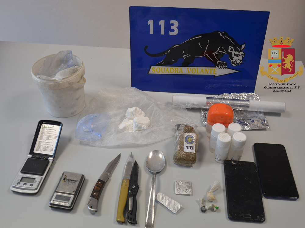 Nel corso di un’articolata attività di polizia giudiziaria, diretta alla repressione dell’illecito mercato della detenzione con finalità di spaccio di sostanze stupefacente, sul territorio senigalliese, gli agenti del Commissariato di P.S., diretti dal vice questore Agostino Licari, hanno ottenuto un altro importante risultato arrestando un pluripregiudicato locale, il senigalliese M. C. 27 anni, e sequestrando una significativa varietà e quantità di sostanze stupefacenti destinate al consumo in particolare di giovani. I poliziotti hanno avviato i loro accertamenti sul soggetto, poi arrestato, dopo aver verificato che lo stesso si era posto da tempo quale punto di riferimento per numerosi consumatori della zona con cui veniva notato intrattenersi anche tenendo comportamenti sospetti. Gli agenti dunque hanno deciso di intervenire per verificare se i sospetti circa il ruolo assunto dal soggetto nel mercato dello spaccio corrispondesse a quanto accertato e dunque effettuavano i controlli all’interno dell’abitazione e delle relative pertinenze ove lo stesso abita unitamente ai propri familiari.