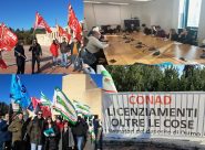 ANCONA – Lavoratori in picchetto davanti a palazzo Leopardi, dove è andato in scena il primo confronto tra amministrazione regionale, sindacati e proprietà. Si punta ad evitare i licenziamenti, passando per tre direttrici: mobilità volontaria, cassa integrazione e ricollocazione occupazionale. Chiesto un altro incontro a stretto giro di posta. Cgil, Cisl e Uil: «Chiediamo non ci siano esuberi». L’assessora Bravi: «Rivendichiamo la progettualità marchigiana e la tutela dei dipendenti» – VIDEO