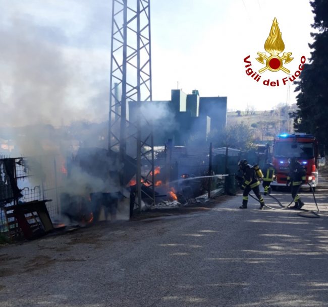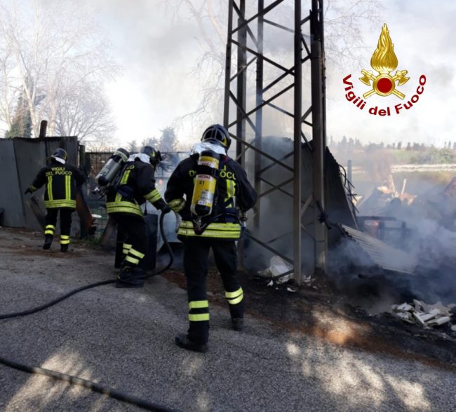 I vigili del fuoco sono intervenuti alle ore 14.15 circa nella periferia di Loreto, in via Morlongo, in un’area adiacente all’uscita del casello autostradale, per domare le fiamme. Sul posto sono arrivate la squadra dei vigili del fuoco di Osimo e l’autobotte dalla centrale di Ancona per circoscrivere l’incendio, spegnerlo e mettere in sicurezza la zona. Presenti anche gli agenti della Polizia locale di Loreto che stanno svolgendo indagini per chiarire i contorni della vicenda, oltre al personale Enel per le verifiche del caso e per ripristinare la fornitura elettrica dopo il black out provocato dalle fiamme. Al momento non è possibile escludere che ad appiccarle sia stata una mano dolosa. Qualcuno potrebbe essersi divertito ad accendere la prima scintilla su quei materiali in legno lasciati all’esterno del deposito, senza valutare le conseguenze della propria azione. In questa stagione l’autocombustione è un processo quasi impossbile e in quella zona non esistono fonti di calore in grado di innescare la reazione di combustione. Il terreno dove si è sviluppato il rogo è uno di quelli affittati a privati dalla Opere Laiche lauretane. Secondo una prima analisi, svolta sul posto dai vigili del fuoco, sembra che il fuoco sia partito fuori dalla recinzione e abbia attecchito sul materiale legnoso lasciato, fuori, sull’appezzamento di terreno per poi propagarsi ed esterndersi fino a bruciare i cavi da 20mila volt del vicino traliccio, diretti a una cabina di trasformazione dell’azienda ‘Pavimental’ (l’erogazione di energia elettrica è saltata nel capannone e sono al lavoro i tecnici Enel per ripristinarla), lambire e danneggiare anche un gruppo elettrogeno, un generatore 380, nel deposito di una ditta edile confinante. Nessuno è rimasto ferito.