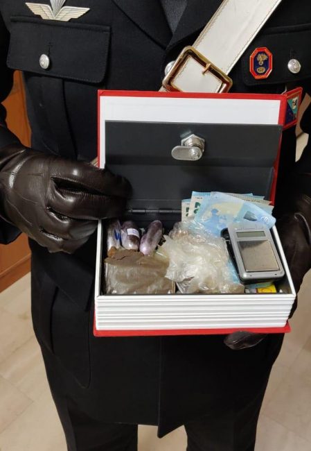 Ad insospettire i militari, proprio la presenza del vocabolario all’interno della camera da letto occupata dal ragazzo: una stanza di per sé spoglia di libri e riviste dove la presenza di un piccolo glossario di lingua inglese, per giunta di colore rosso, non è passata di certo inosservata. All’interno del piccolo fortino sono stati ritrovati un panetto di hashish da mezzo etto, una decina di involucri di hashish, pronti per la cessione, confezionati con cellophane trasparente, per un peso complessivo di circa 35 grammi, tre ovuli di hashish da 10 grammi ciascuno, un bilancino di precisione e 50 euro in denaro contante. Ed ancora, nel comodino accanto al letto, all’interno di un cassetto, una busta in plastica contenente ulteriori 15 grammi di marijuana. Il 21enne è stato arrestato e collocato ai domiciliari in attesa dell’udienza di convalida. Nel corso della perquisizione, i militari hanno anche rinvenuto un’esigua quantità di marijuana nella disponibilità del fratello convivente più piccolo, un giovane 19enne che risponderà di detenzione per uso personale.