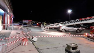 Continuano i danni causati dal forte vento di questi giorni. Questa i vigili del fuoco del distaccamento di Jesi sono intervenuti con l’autoscala a Castelplanio nel parcheggio del centro commerciale Oceano, in via del Commercio, per un’insegna della palestra “Atheneo” divelta dal forte vento. L’insegna è caduta al di sotto ed è un miracolo che non abbia colpito nessuno, anche perché c’era ancora un via vai di clienti del centro commerciale e personale degli uffici al primo piano. L’area è stata transennata e i vigili del fuoco hanno provveduto a mettere in sicurezza le parti pericolanti e rimuovere i materiali finiti sparsi davanti all’ingresso della struttura. Le operazioni sono ancora in corso. Non si segnalano feriti o danni alle auto parcheggiate nel parcheggio di fronte all’ingresso del centro commerciale. In questi giorni sono stati oltre 100 gli interventi effettuati dai vigili del fuoco su tutto il territorio. A Jesi sempre oggi hanno messo in sicurezza il tetto di un’abitazione dove si era staccato ed era caduto il comignolo di cemento.