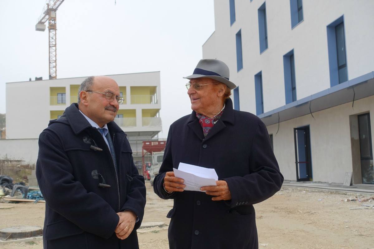 Renzo ARbore con Rossano Bartoli, il presidente della Lega del Filo d’Oro di Osimo in visita al cantiere del centro nazionale