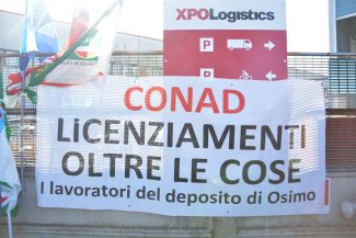 Dopo il sit-in dello scorso 13 febbraio, che ha visto la partecipazione dei vertici della Regione Marche, prosegue la protesta dei lavoratori impegnati nel deposito di via Edison a Osimo con un ulteriore giornata di sciopero prevista per giovedì prossimo, 20 febbraio. «A seguito della mancanza di risposte da parte di XPO, si continuano ad alimentare i timori sulla reale volontà di investire sul magazzino che si sta lentamente spegnendo a causa del calo dei volumi movimentati e dello spostamento della merce verso altre strutture.- spiegano in una nota Carlo Cotichelli della Filcams-Cgil, Selena Soleggiati della Fisascat-Cisl e Fabrizio Bontà della Uiltucs – Siamo convinti che il deposito rappresenti una risorsa importante per il mondo Conad e che vadano fatte scelte che preservino anche questa unità distributiva affinché venga assicurato un futuro al magazzino e agli oltre 100 lavoratori che ad oggi lo vivono. Per tali ragioni, lo sciopero di giovedì 20 febbraio è stato proclamato dalle segreterie regionali di Fisascat Cisl, Filcams Cgil e Uiltucs per l’intero turno di lavoro e vedrà il presidio iniziare alle ore 9 davanti ai cancelli del Deposito».