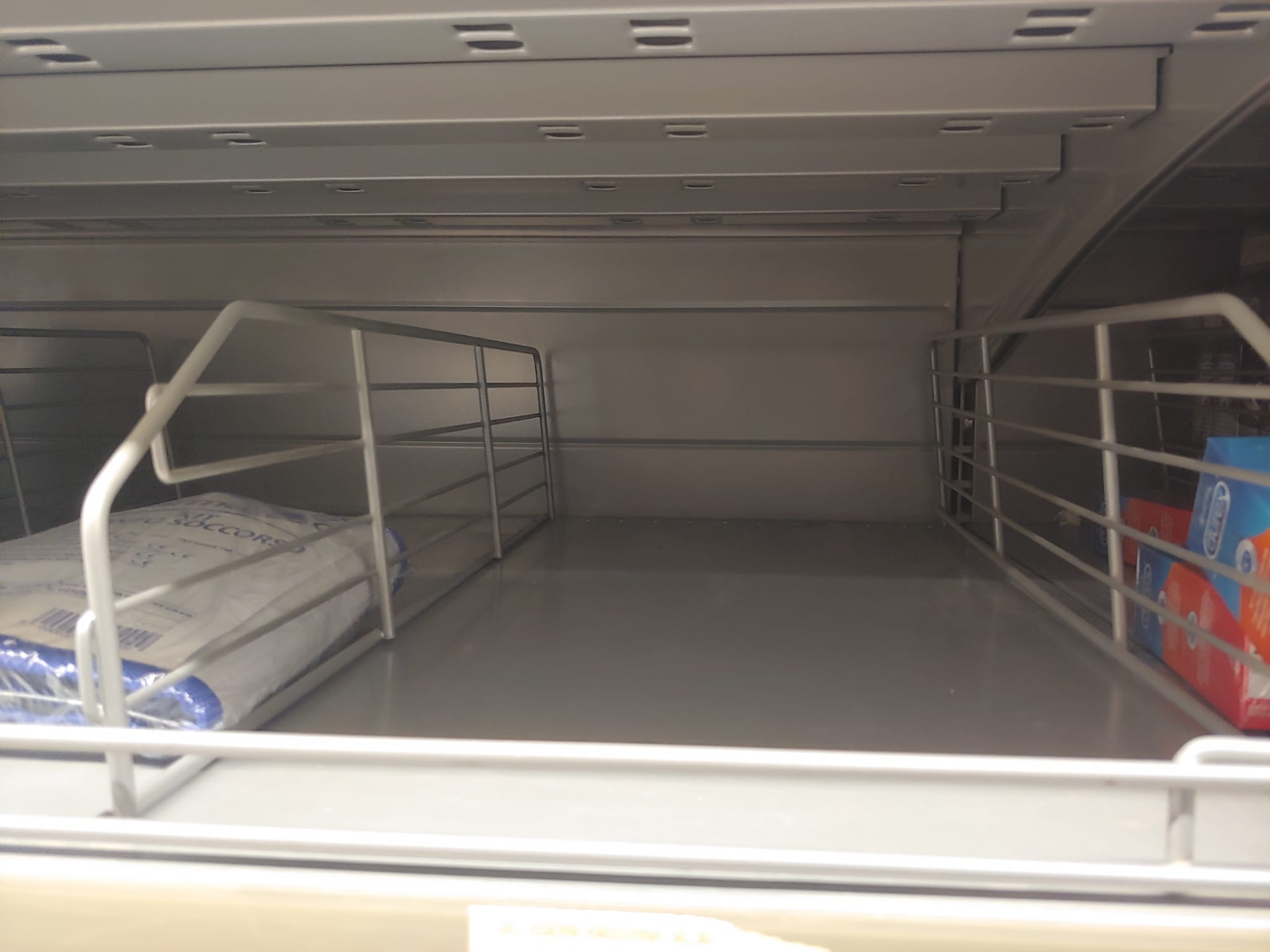 Scaffali di gel igienizzanti quasi vuoti nei negozi e supermercati